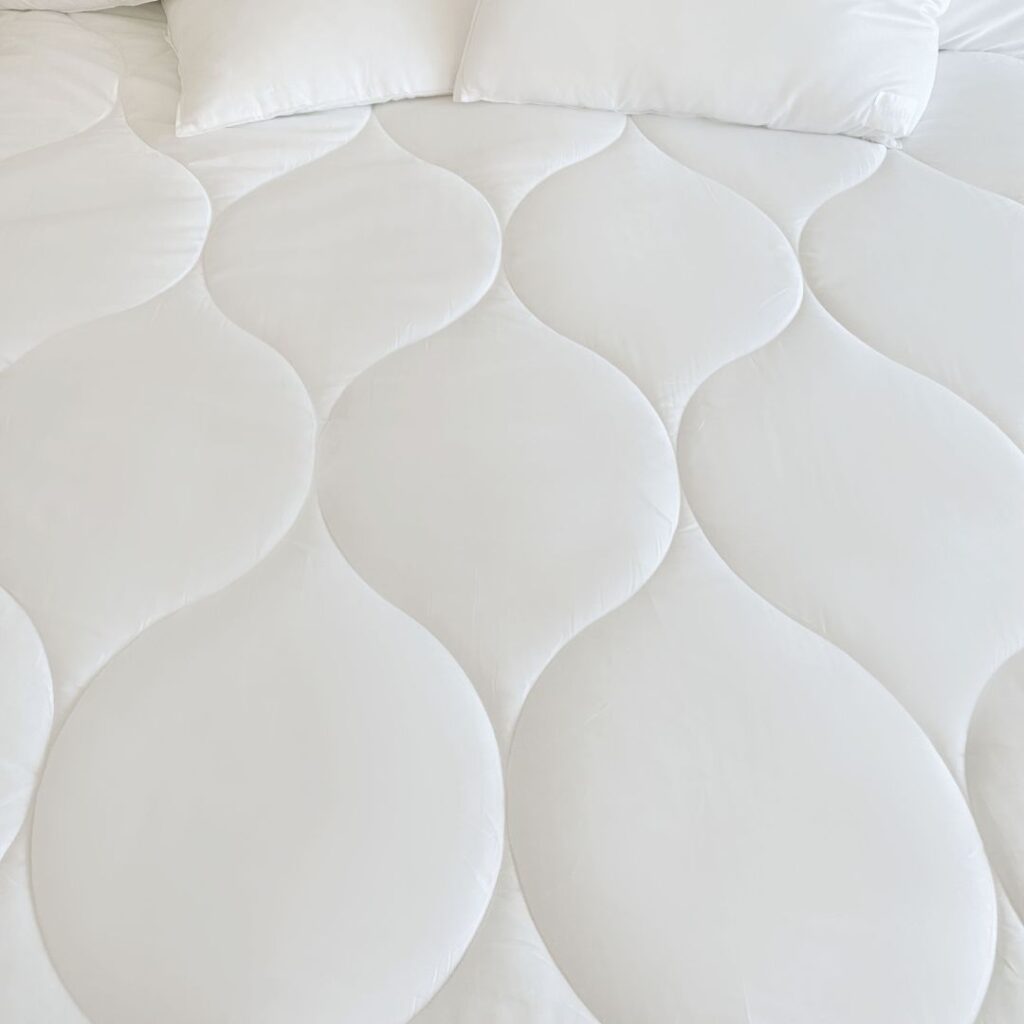 I also realized that the aesthetically pleasing stitched pattern serves as more than just decoration: it’s a proprietary pattern designed to lock the fill in place. That way, the comforter’s weight is evenly distributed and doesn’t require repositioning or fluffing.